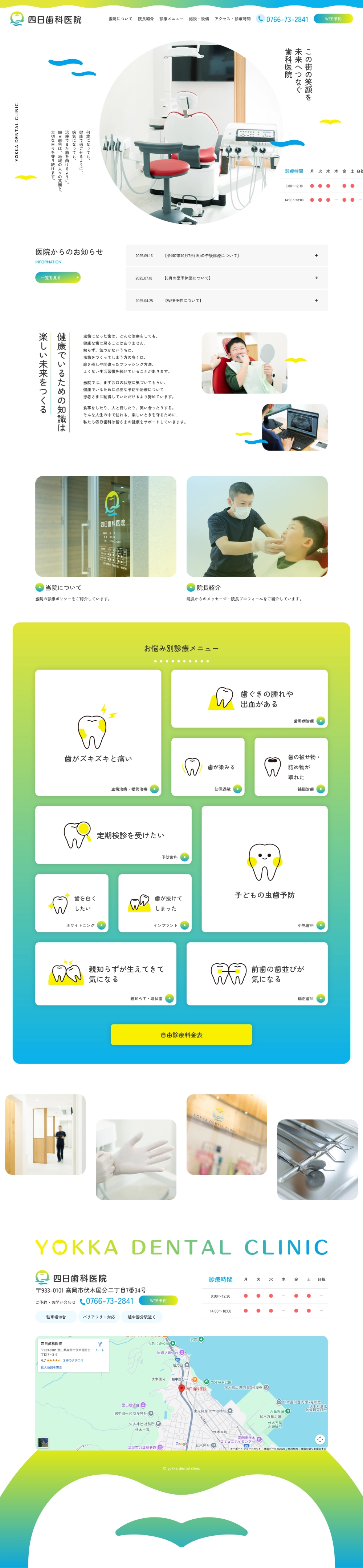 歯科医院の開院に伴い、ロゴマークからWEBサイトまでの制作を行わせていただきました。 院長先生の地元の海とお名前をイメージしたロゴマークは大変気に入っていただき医院の制服にも刺繍をしているとのことでとてもやりがいのあるお仕事となりました。