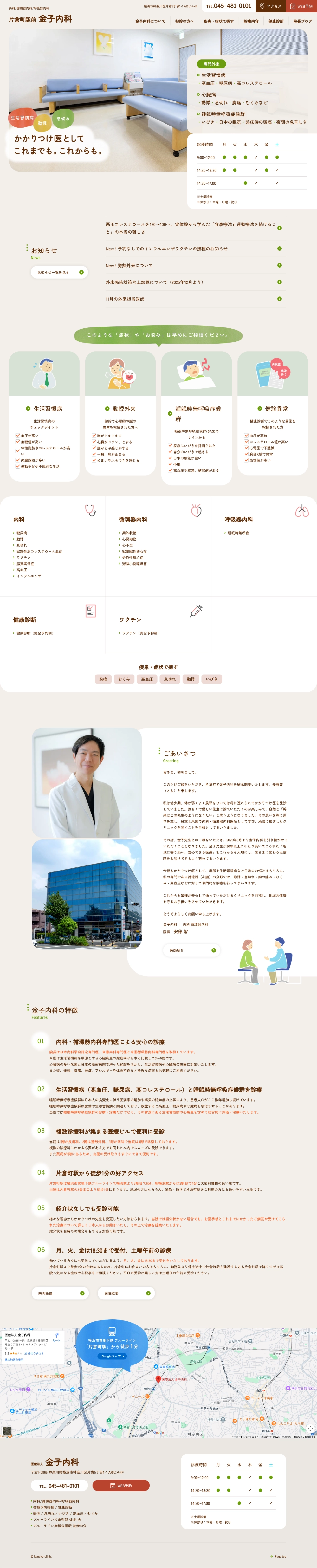 横浜の南北を走る基幹交通である横浜市営ブルーラインの片倉町駅徒歩1分、複数の診療所が入居するARビル4階にある「金子内科」は、その名前の通り、院長の金子先生が20年以上の長きにわたり地域の皆様に頼れる診療所として営んできた一般内科医院です。