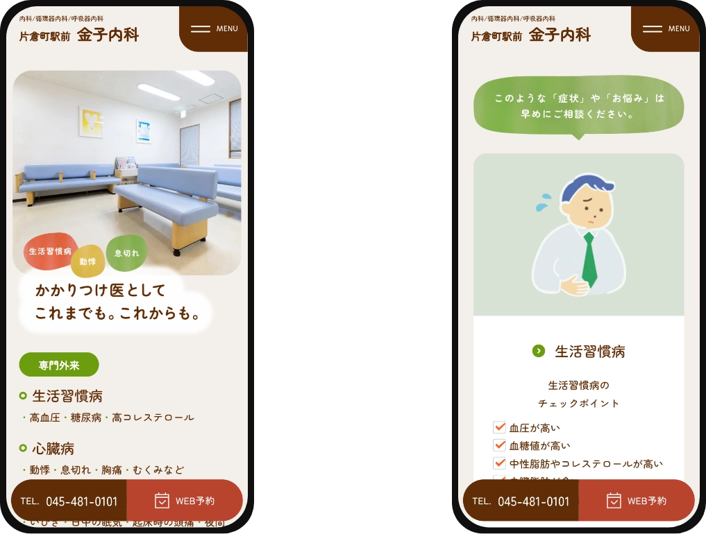 一般内科のみであった医院に、安藤先生の強みを活かすために、新たに呼吸器内科・循環器内科を追加し、医院の専門性を高めた構成になりました。