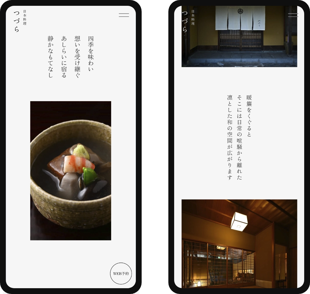 料理、数寄屋造り、そして「本物」が持つ魅力をそのままに活かし、さらに美しく見せるデザインを徹底。余白を効果的に配し、写真の力を最大限に引き出すことにこだわり抜いた、シンプルで研ぎ澄まされたサイトに仕上げています。